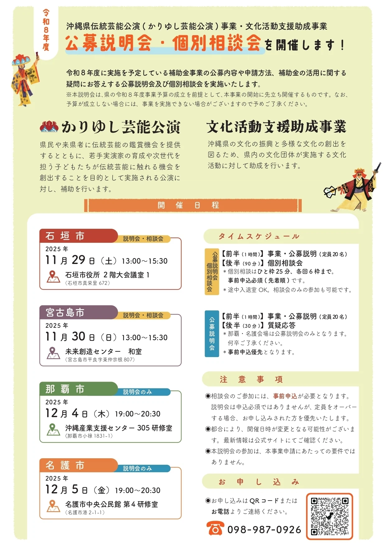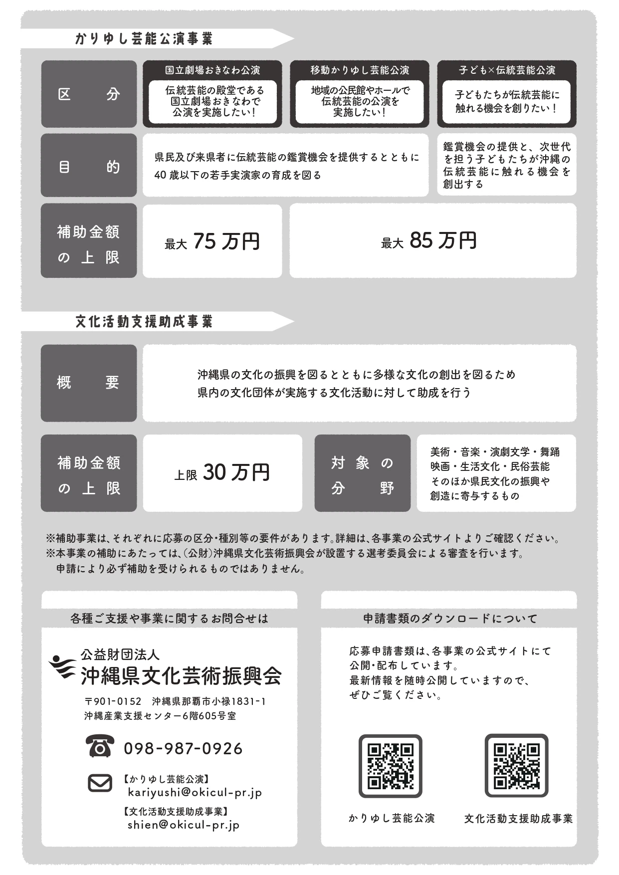 (かりゆし芸能公演または文化活動支援助成事業 担当まで)