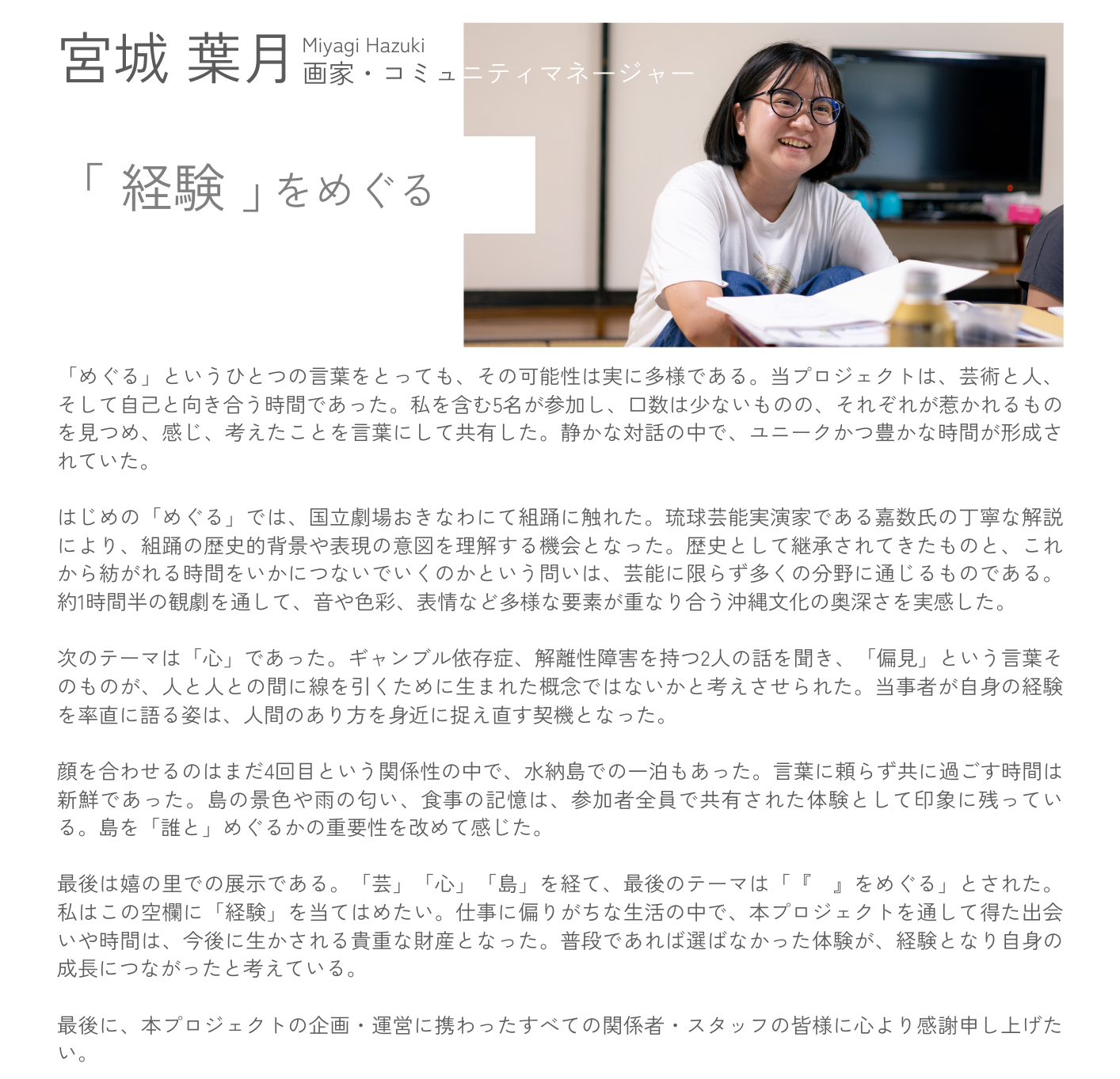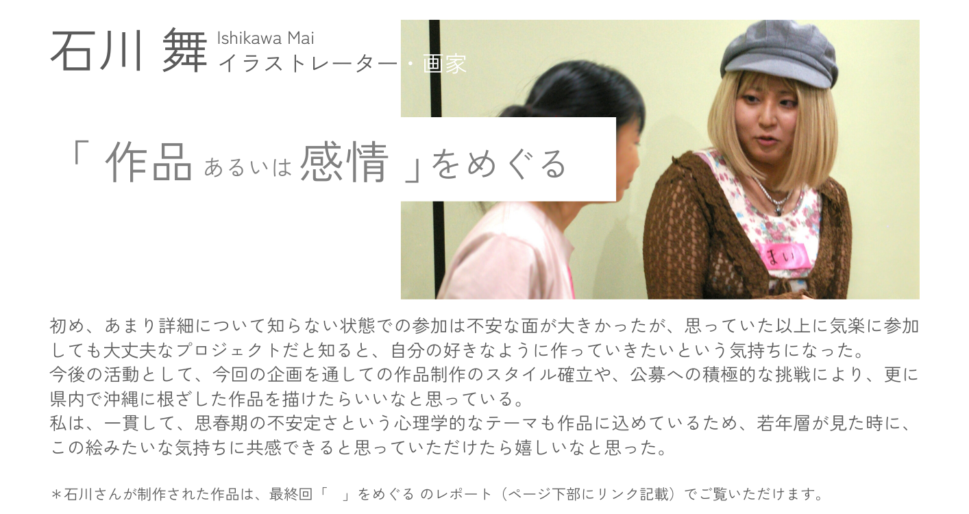 ご感想とともに、プロジェクトを終えて、ご自身が最終回のタイトル「 」をめぐる の「 」の中に入れたいと感じられた言葉を載せています。