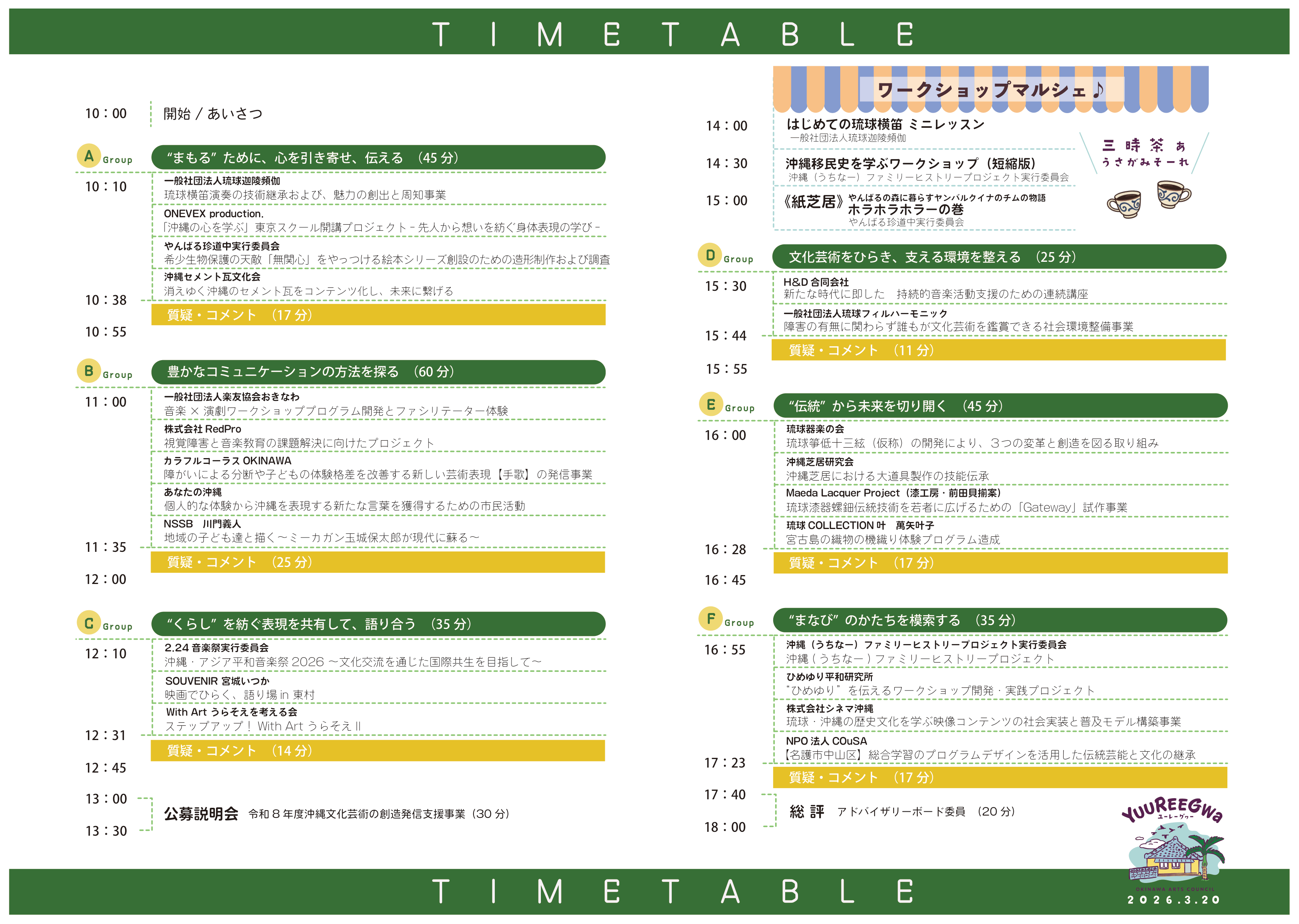 それぞれのおもしろさをより深く楽しんでいただけるよう、「YUUREEGWa」(ユーレーグヮー)を開催します。
