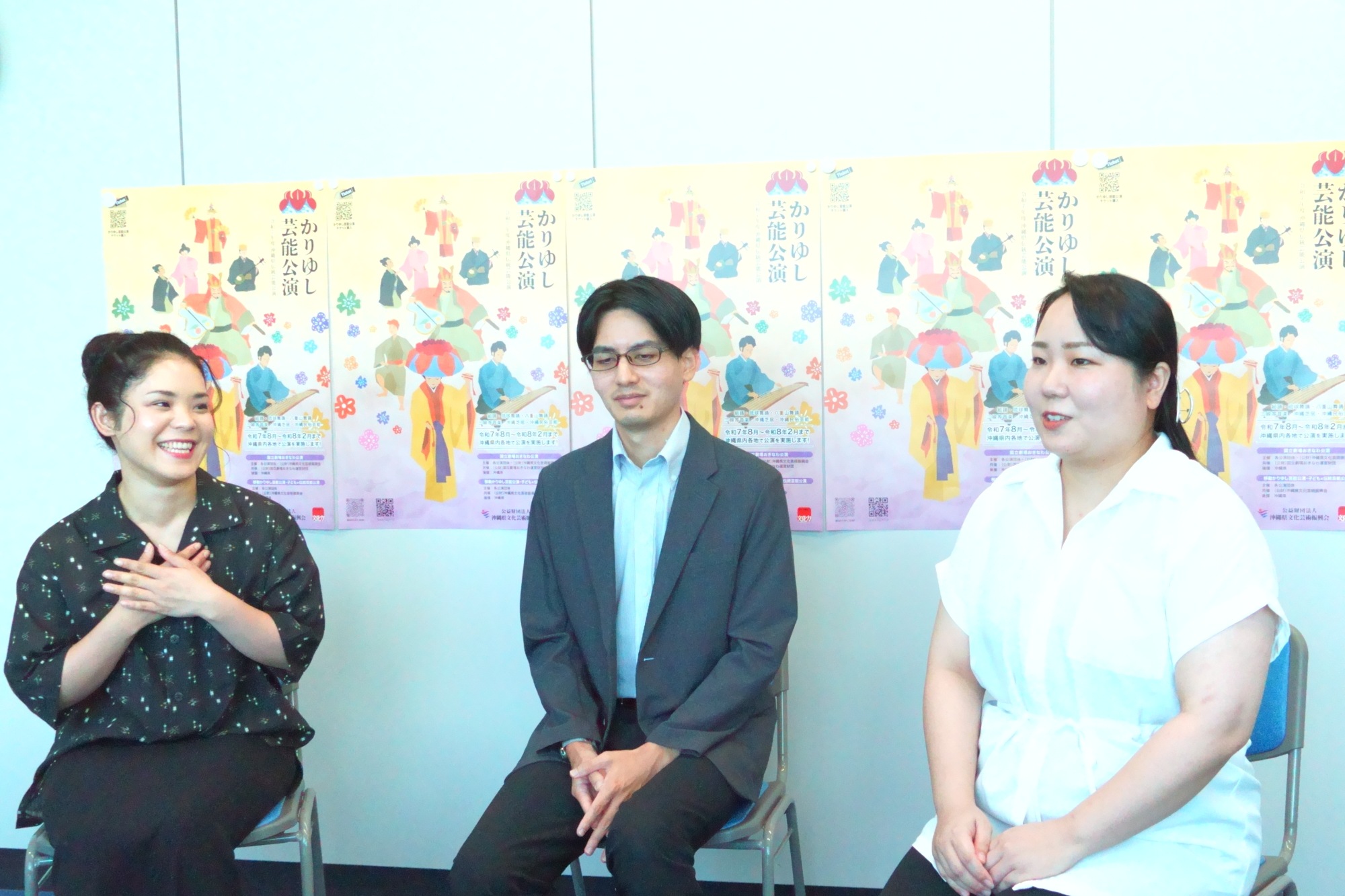 佐久本純さん:結成は今年の4月ですね。今回のかりゆし芸能公演を開催するにあたって、会として、団体としての方が動きやすいということで、結成しました。「共同研究」という名前をつけているのですが、公演や舞台制作など自分たちが出演すること以外にも、幅広く一緒に琉球芸能について考えていきたいなという思いがあります。現在、メンバーはこの3人ですね。