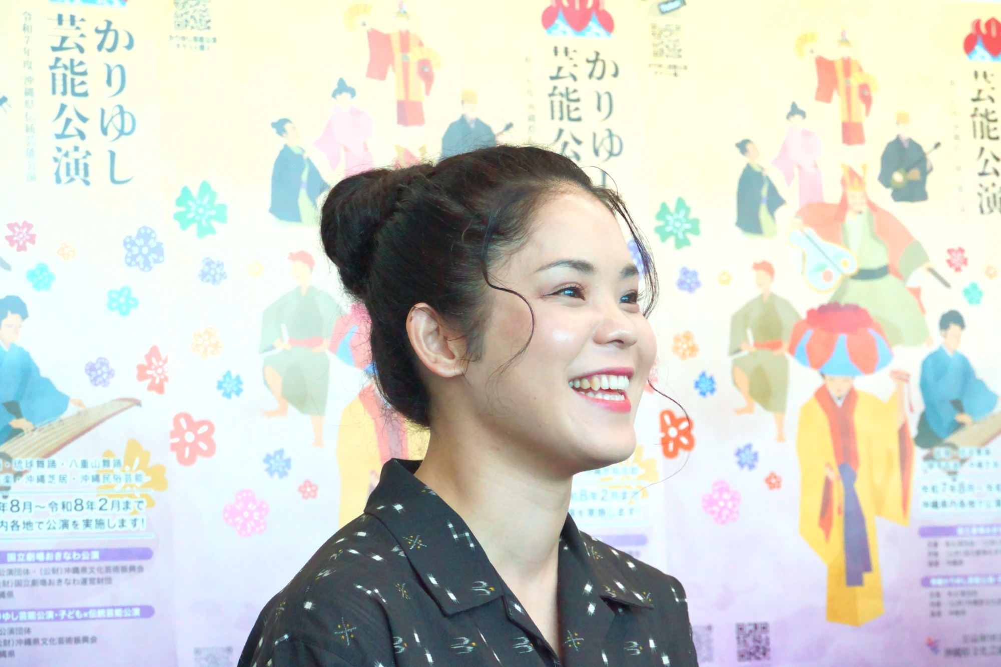 私は母の勧めで3歳で始めたので、そこに自分の意思はなかったんですけど。やっぱり大学進学や卒業後も続けるのは、自分の意思だと思うんですね。ただそれを意識してやってきたということはなくて、本当に私は琉球舞踊しかできないんですよ。だから、本当に大好きだから続けているという感じです。最近よく考えるのは、すごく大げさでおこがましいかもしれないんですけど、人生ってそれぞれ役割みたいなことがあると思っていて、それは自分で選ぶものなのか、自然と与えられるものなのかはわからないんですけど。琉球芸能をしている人にとっては、それが役割なのかなと思います。沖縄の言葉で「すくぶん(使命、役割)」と言うのですが、それぞれのすくぶんとして与えてもらい、踊らせてもらえる機会をいただいているので、頑張ろうという感じかもしれないです。