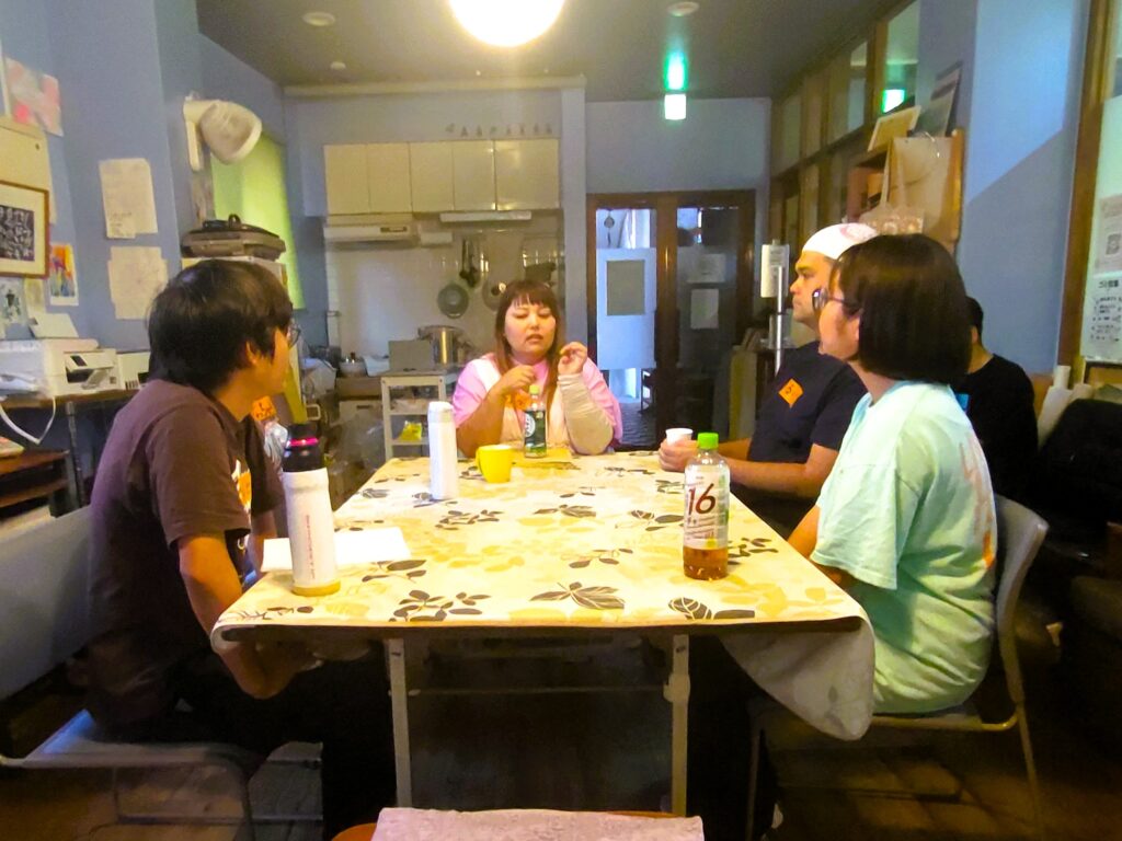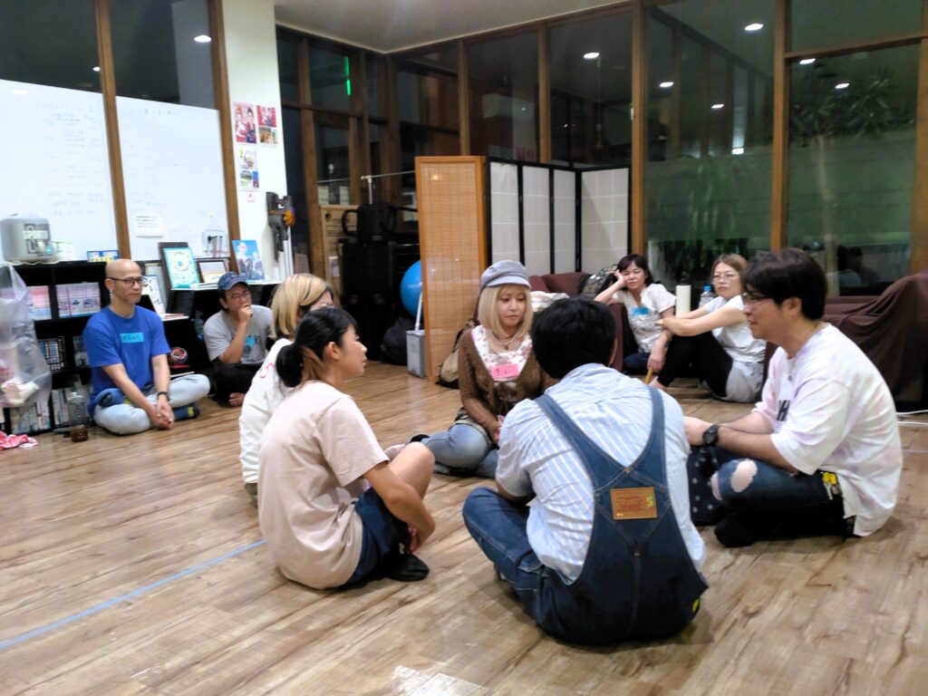 それぞれのインタビューが終了し、お芝居制作のためのミーティングと稽古が始まった。TEAM SPOT JUMBLEの与那嶺さんとナツコさんのファシリテーションのもと、特に印象に残った話を軸に物語を組み立てていく。演劇づくりが初めてのプロジェクトメンバーがほとんどのようだが、一人一人が積極的にアイデアを出していた。