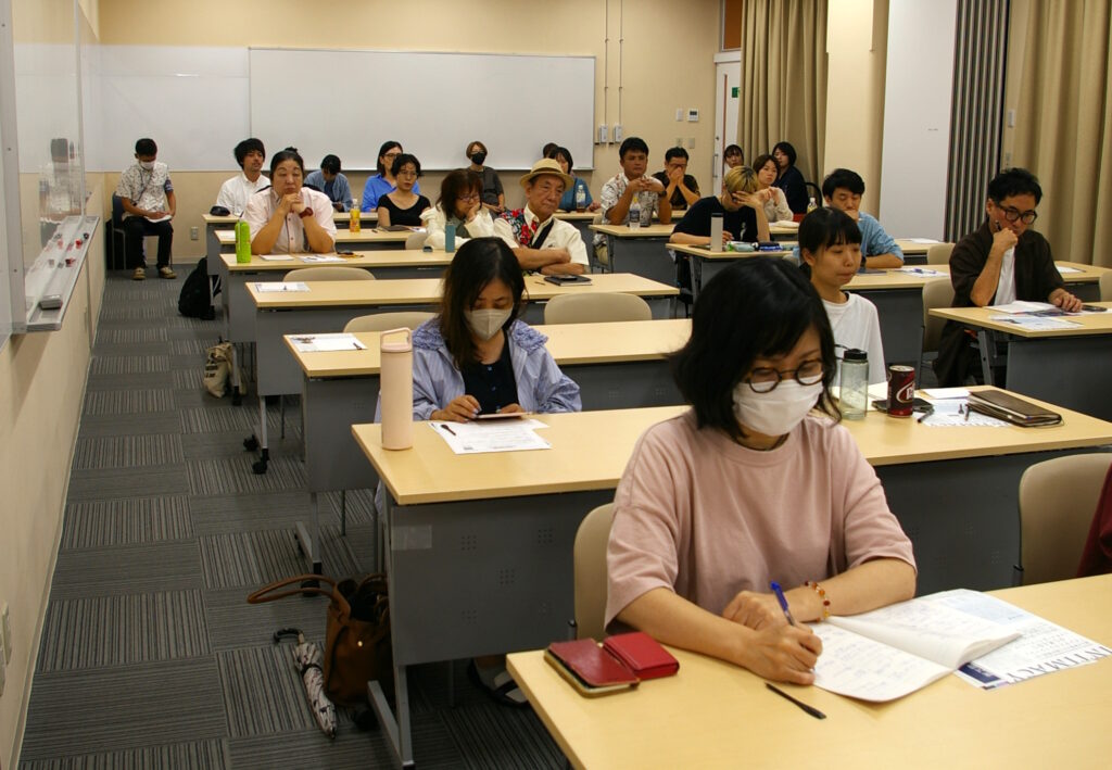 受講者の多くが映像や演劇制作に携わる方々でした。満席に近い会場の様子からは、沖縄におけるインティマシーコーディネーターへの関心の高さがうかがえます。