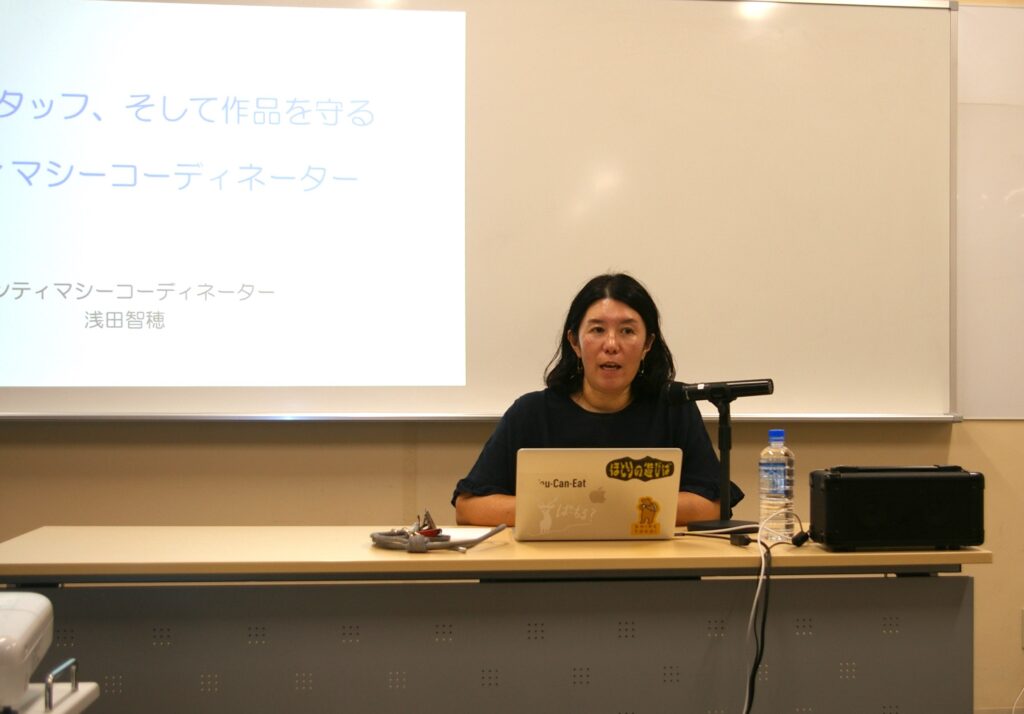浅田さんは、2020年にNetflix作品『彼女』にて日本で初めてインティマシーコーディネーターとして参画されて以来、是枝裕和監督の映画『怪物』やNHK大河ドラマ『べらぼう〜蔦重栄華乃夢噺〜』など、数多くの作品に携わっていらっしゃいます。精力的に活動を続けておられる浅田さんのレクチャーを通じて、国内外の事例や導入の背景、そしてインティマシーコーディネーターの役割について学ぶ機会となりました。